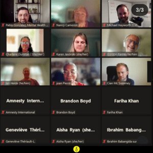 Amnesty International has been active in the Hamilton/Burlington area for decades, with groups active at different times in Hamilton, Burlington, and at McMaster University. The current group includes members from Hamilton and Burlington, and meets on-line monthly from September through June. We meet on the 4th Monday of the month, at 7:30 pm. Our meetings generally feature a presentation or speaker on a human rights issue of concern, and letter-writing.